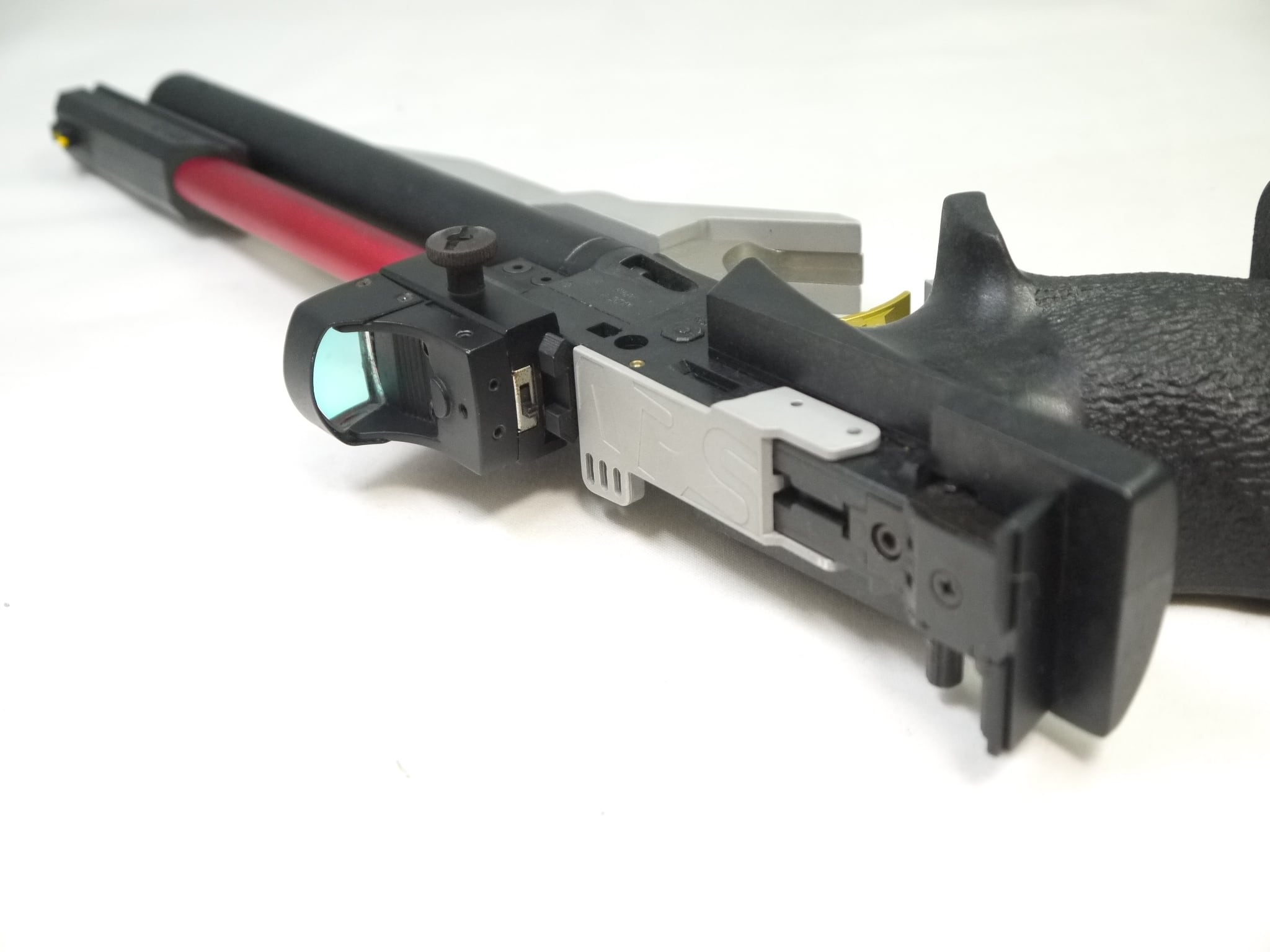 ・フロントバレルを取り外し、レールを装着してください(画像3枚目参照)。